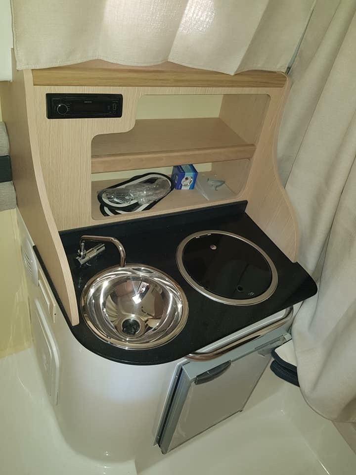 Thanks to the full-sheet cover system, the boat remains usable and comfortable in all weather conditions. Whether you’re cruising under the sun or staying overnight, the Saver 830 Cabin offers year-round reliability.